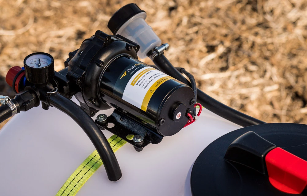 | Bomba | Eléctrica de 12 volts para agroquímicos de 19 Itrs/min a 4.2 bares, con switch de corte por presión y temperatura como protección de la bomba. |